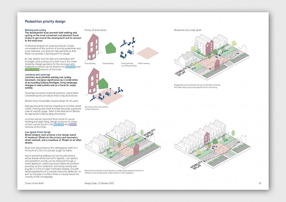 The Cherry Hinton Design Code provides a blueprint for housebuilder development that is less car focussed, and more walkable, sociable, greener, and energy efficient.