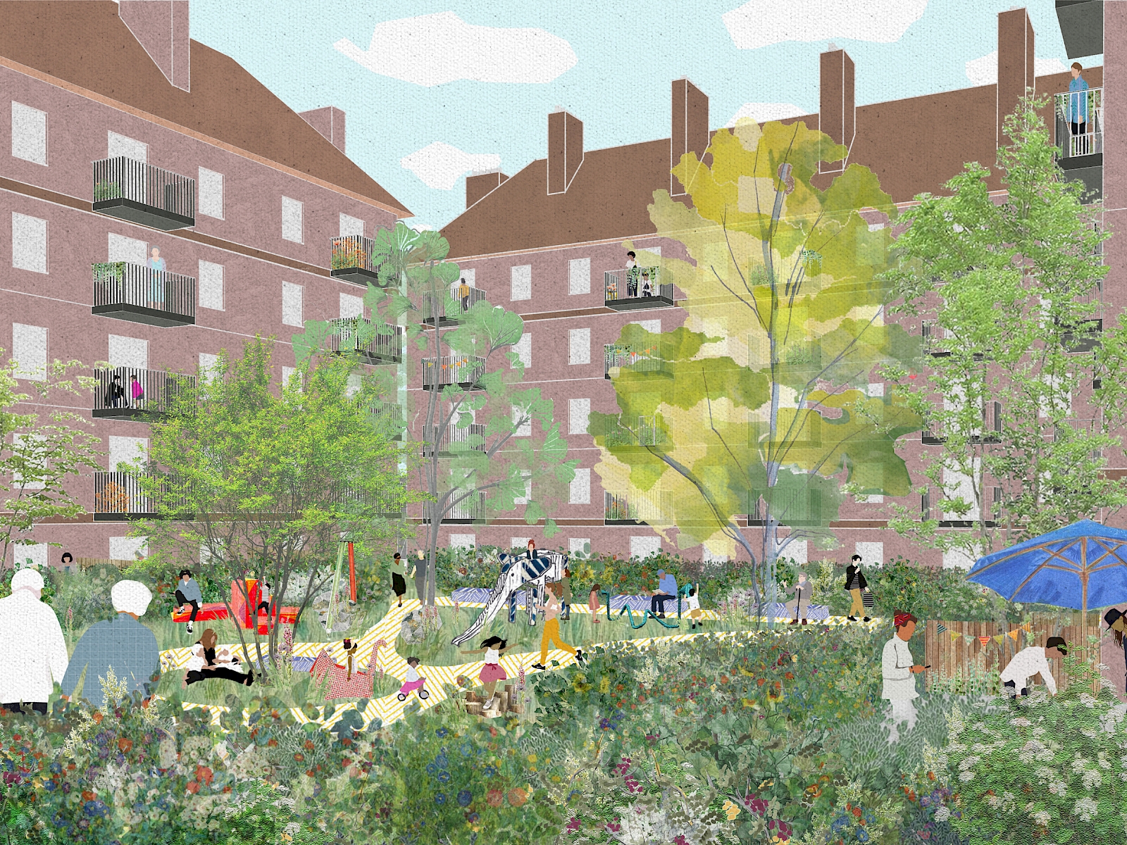 Barnsbury Estate is a masterplan that will transform an entire housing estate near Kings Cross. The proposals for more than 1,000 homes include the deep retrofit of existing, ‘30s-built homes of Old Barnsbury, and the redevelopment of post-war buildings at New Barnsbury.