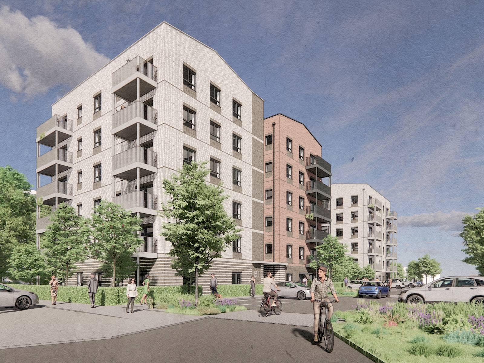 The scheme, to be built by Hill, redevelops a brownfield site previously occupied by a disused storage facility. It will provide 66 one, two, and three-bedroom gas-free apartments available at affordable rent. Environmental features include air source heat pumps, cycle storage to promote active transportation, and electric vehicle charging stations.