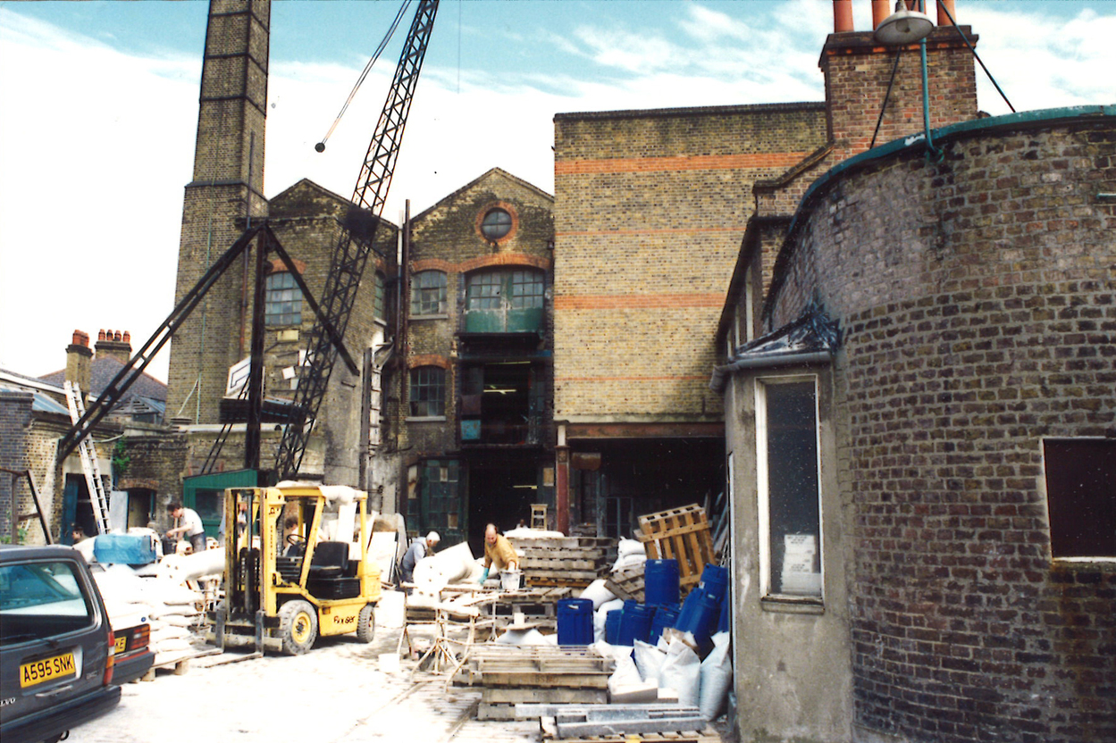 When PTE first took ownership, the last remaining tenant had a ground floor workshop where anything from stage sets and firework displays to canal boat superstructures were built. Bill Thomas recalls that scooping out the basement – which today, plays host to Diespeker’s premier social space – was done using a digger inside the building. The only problem, ‘was whenever it had to reach full height it shook the first floor above - so no drawing could be carried out while it was working!’.