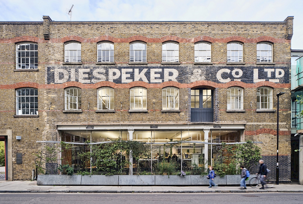 Diespeker Wharf is an ongoing retrofit project, augmented over the years as its owners and tenants have come and gone. Pollard Thomas Edwards moved there in the 1990s, when one of its founding partners bought the Victorian brick edifice from then owners, British Waterways. It began life as a timber mill, and takes its name from stone specialist Diespeker & Co, another preceding tenant, whose terrazzo products make a return in this latest incarnation.