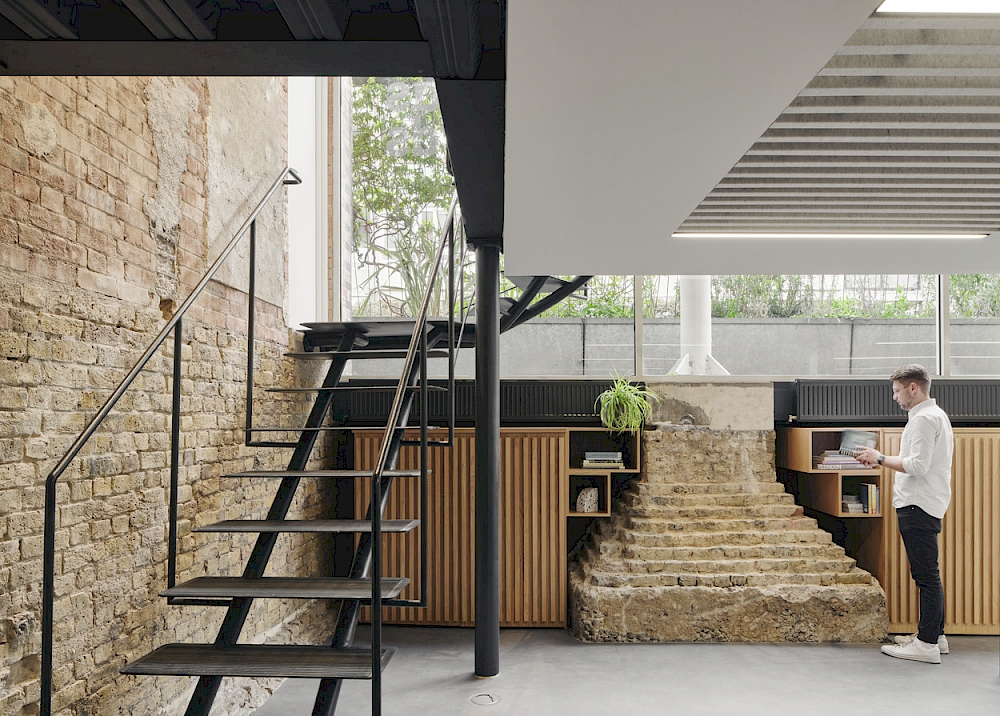 Diespeker has always been lived in by artisans and successive occupants (design agency Made by Many have lived on the top floor for years now and Stanton Williams had the ground floor for a while) have altered and re-thought how to use it ever since, most recently, by the third generation of PTE partners with TTSP. The working relationship was intense but fruitful. Given the tight budget, curating the palette together - of brick, wood, terrazzo, safety glass and steel – was a model of collaboration, drawing on PTE’s role as a developer-architect and TTSP’s work in the corporate interiors sector, to great effect.