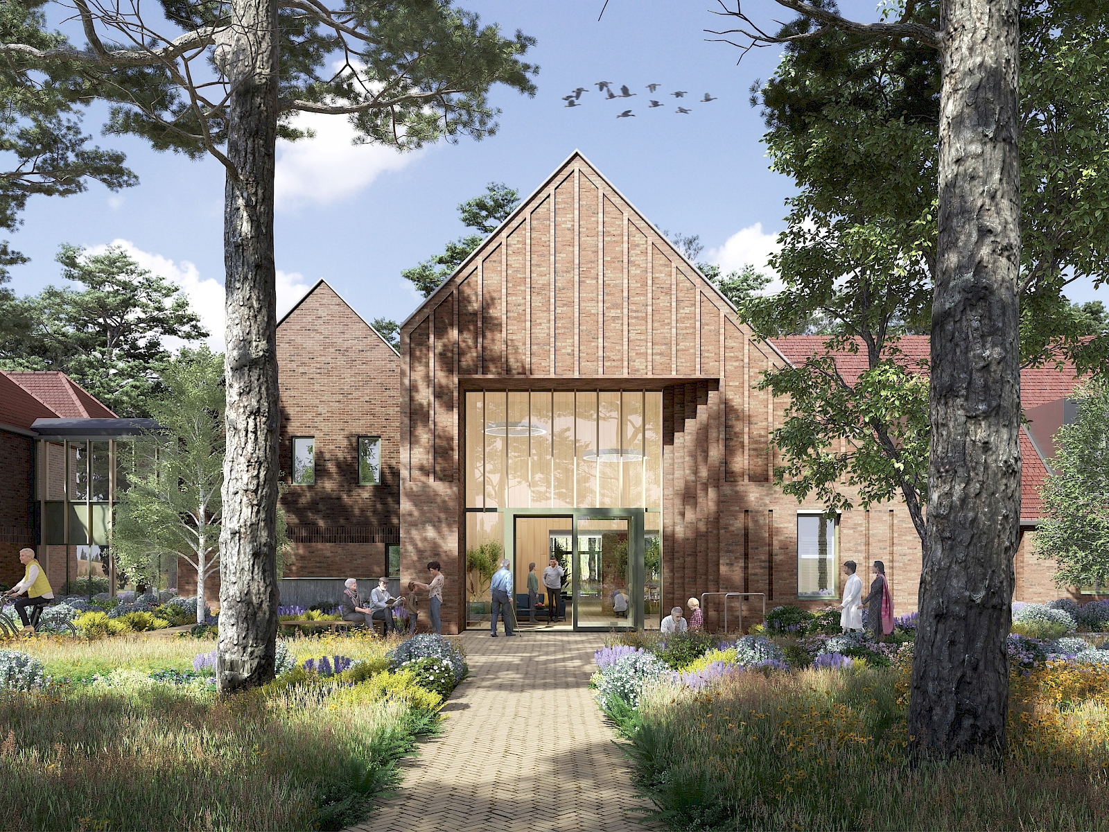 This striking new care centre, spanning over 3 acres, will be located within the northern edge of woodland of Mindenhurst, a new neighbourhood in Deepcut, Surrey, and the former Ministry of Defence (MoD) Princess Royal Barracks.
