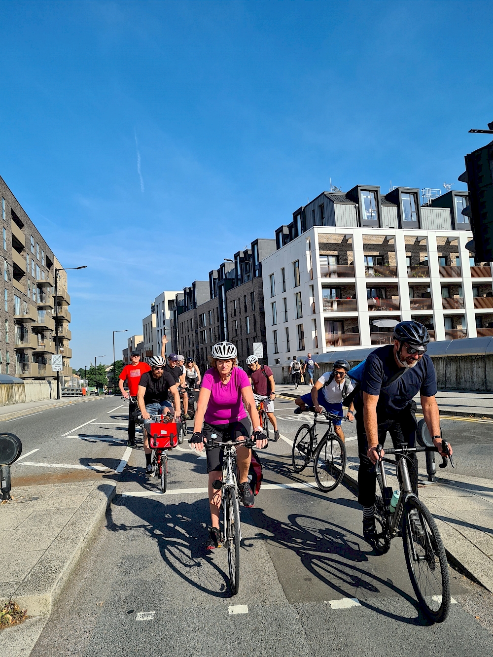 Friends, clients and curious members of the public joined Pollard Thomas Edwards on a cycle tour of its East London Projects during the Open House Festival last week. The 12-mile tour covered seven housing projects linked by the Lea River and Regents Canal, and also took in the PTE-designed practice headquarters Diespeker Wharf, for a well-earned celebratory drink in the retrofitted terrazzo factory.