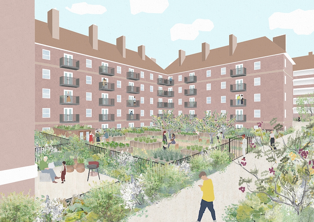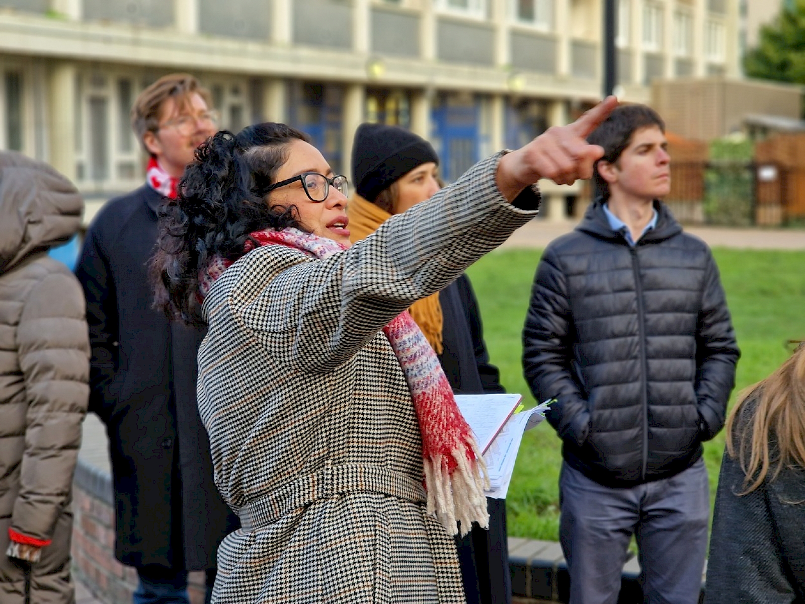 Social value design lead Gloria led a post-lunch social value walking tour of King Square and Wharf Road, summarising resident feedback and lessons learned on each site. At King Square, an existing 1960s estate with 140 new mixed-tenure homes and enhanced public spaces, we learned that younger residents requested space for singing and dancing, and parks separated by age groups. At Wharf Road, where Gloria summarised client Peabody’s POE findings, we heard that despite an overall high satisfaction rating, residents expressed concern over security and privacy.