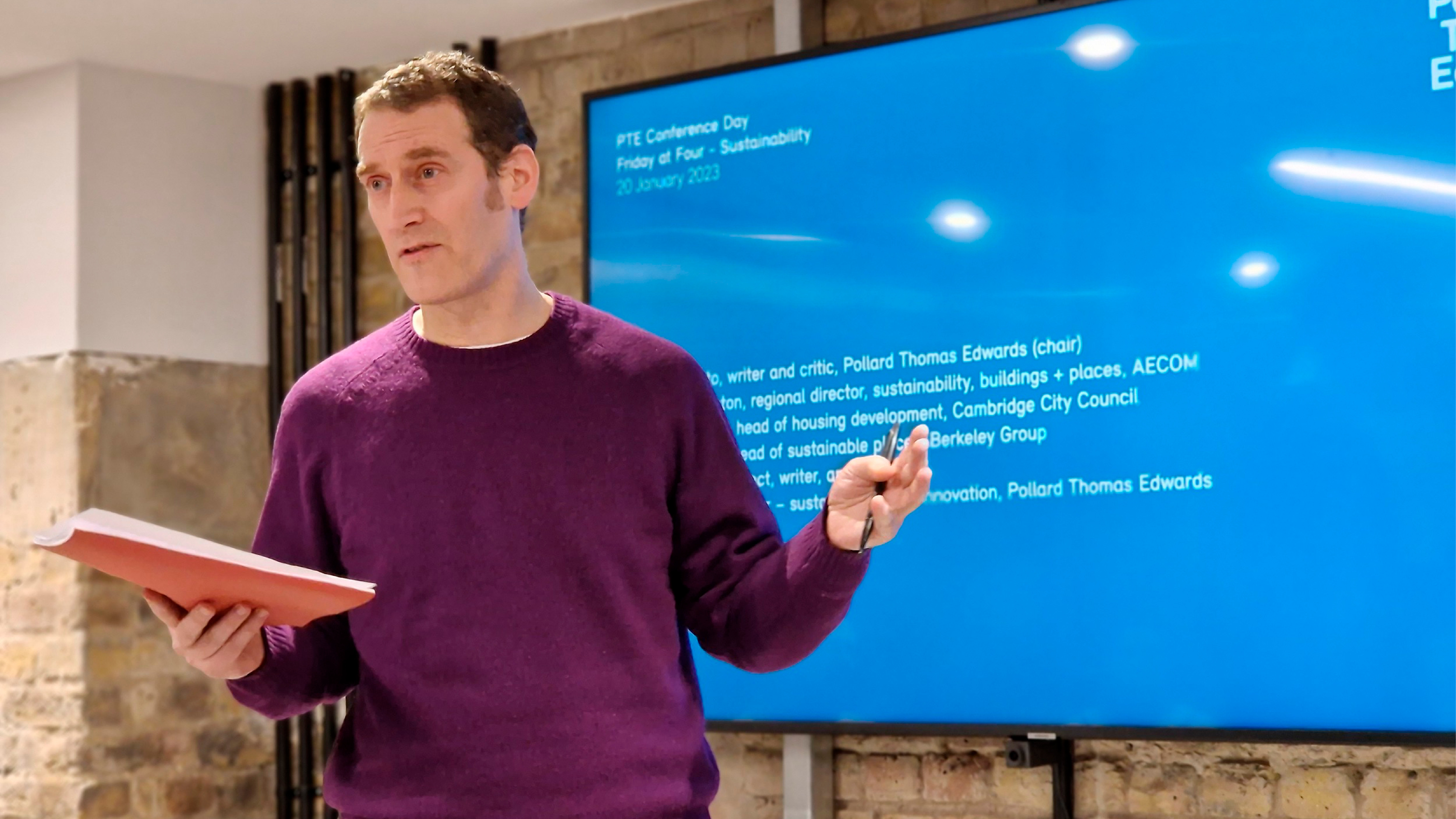 Following breakfast (pastries, berries and yoghurt) partner Tom Dollard welcomed colleagues, and together with his team – Filipa Oliveira, Grecia Castillo, Joseba Perez, Gloria Vargas Palma - provided an overview of PTE’s sustainability strategy. Filipa reminded us of the urgency for everyone to fortify their zero carbon design skills, showing how a recent in-house survey highlighted both our expertise and the knowledge gaps we have (and encouraged us to attend her later talk focused on how we can integrate sustainable design with everyday practice!) Joseba focused on the importance of persuading clients to set aspirational carbon reduction targets at the brief-writing stage - and commit to certification.