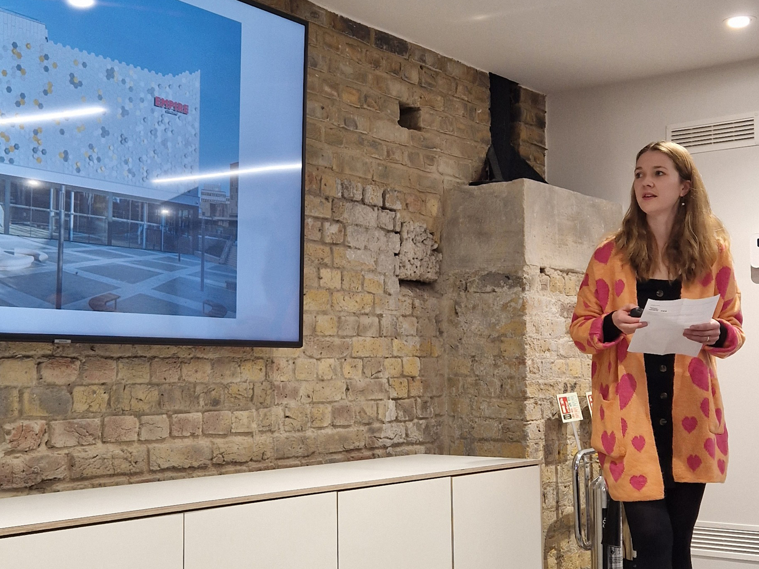 Next, Ashleigh showcased East Square Cinema in Basildon (opening Feb ’23) explaining how its façades, in the new town tradition, are activated by artwork – in this instance, a lenticular screen made with local schoolchildren.