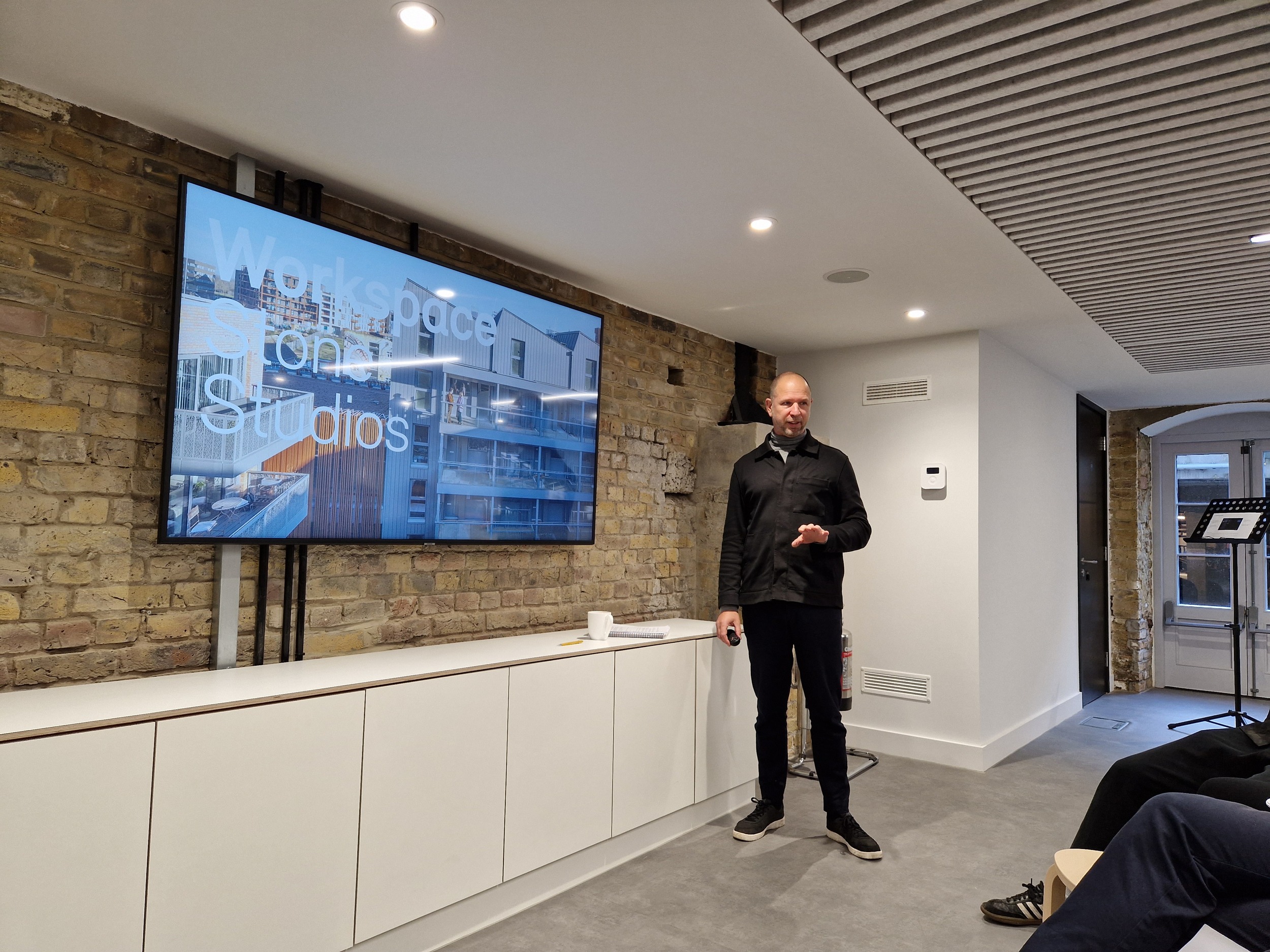 Hamish Kilford-Brown picked up the baton, focusing on Stone Studios, a recently complete mixed-use Hackney Wick building, blending homes with artist’s workspaces, while Justin provided an overview of Gunpowder Mills, our retrofit and newbuild HQ for Hill Group in Waltham Abbey. Partly inspired by our own transformation of Diespeker, but on a far larger scale – Justin called it an ‘industrial cathedral’ – and completed in 2009, it is currently in the running for Architecture Today’s inaugural Test of Time Award.