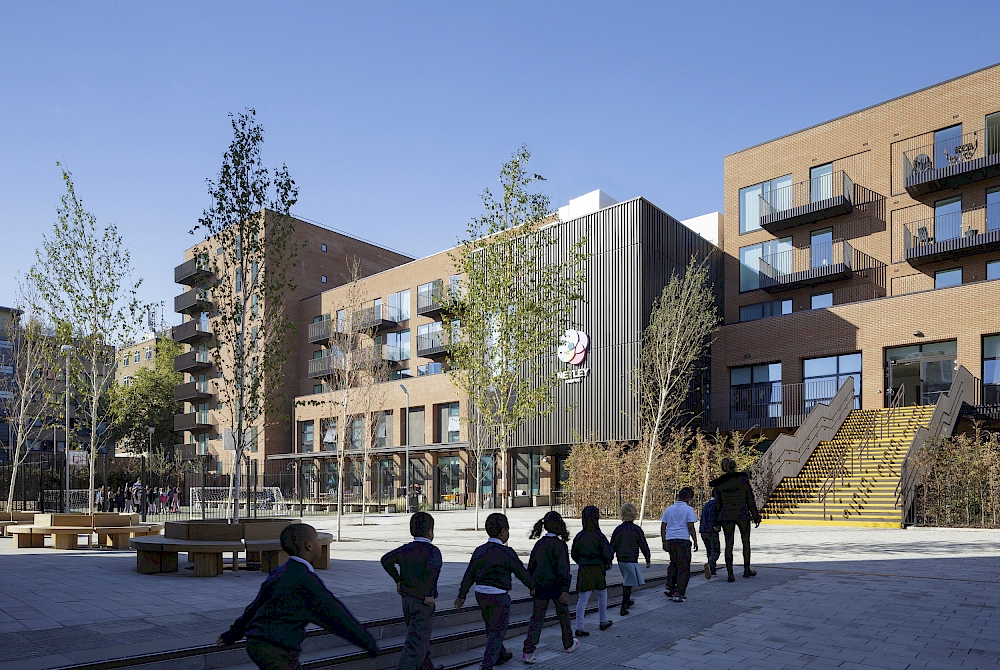 The welcome lecture was a whirlwind trans-sectoral tour of PTE’s project portfolio by a host of our in-house experts. Simon Whitley kicked off with education, reflecting on our track record in co-location – an approach blending a new school with homes in a mixed use development. Simon picked out St Jude and St Paul’s CE Primary School, begun way back in 2001. It was out first school and the first in London (and we think the UK) to co-locate homes above the teaching areas, an idea Simon explained developed further including Netley Campus, at Euston, Tidemill Academy in the heart of Deptford, and Bow Garden Square in Tower Hamlets, completed in 2020, which co-locates, a school with a mosque, housing and nursery.