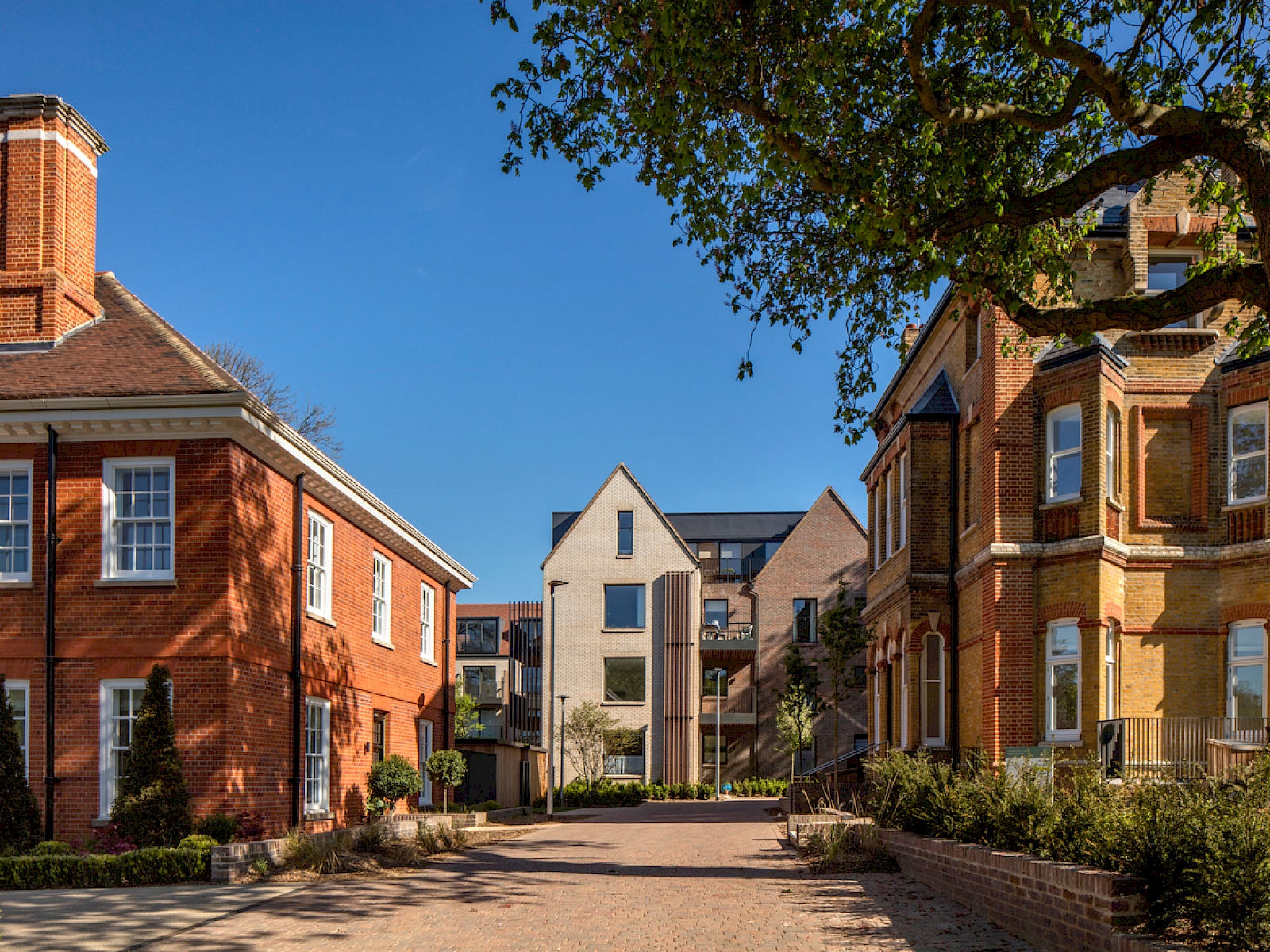 Formerly St Luke’s hospital, Woodside Square provides apartments for the over fifties in new garden villas alongside restored heritage buildings, grand new family houses and affordable family homes.