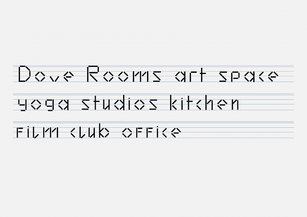 Our response was to develop a flexible identity to accommodate the multi-purpose nature of Dove Rooms. Central to the identity is a custom alphabet that draws upon the aesthetic of DIY lettering often associated with self-governed, autonomous spaces. By combining the letters ‘D’ and ‘R’, we created an accompanying monogram, which develops further into an abstract pattern, employed for manifestations and complimentary visual signs.