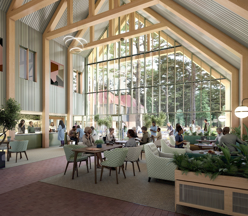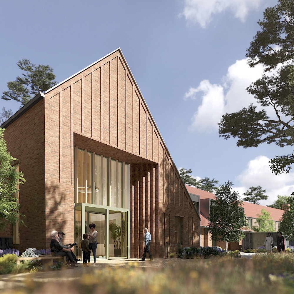 This striking new care centre, spanning over 3 acres, will be located within the northern edge of woodland of Mindenhurst, a new neighbourhood in Deepcut, Surrey, and the former Ministry of Defence (MoD) Princess Royal Barracks.