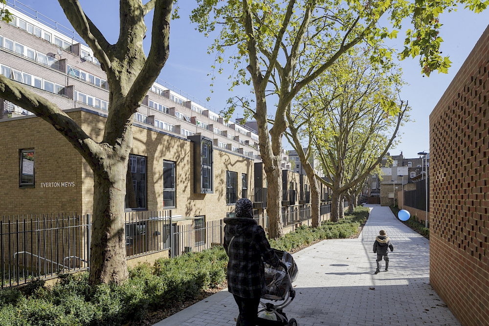 PTE’s masterplan features 70 private homes, one- and two-bedroom flats, the sale of which funded the project. It also features ten affordable family homes - mews houses - that revitalise a disused alley to create a new public route through the neighbourhood. Flats are reached by their own lift - accessible from the street - and most are dual aspect for better ventilation and views.