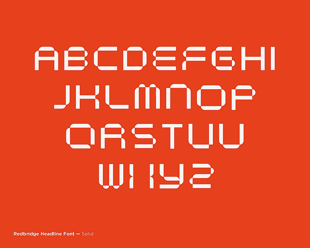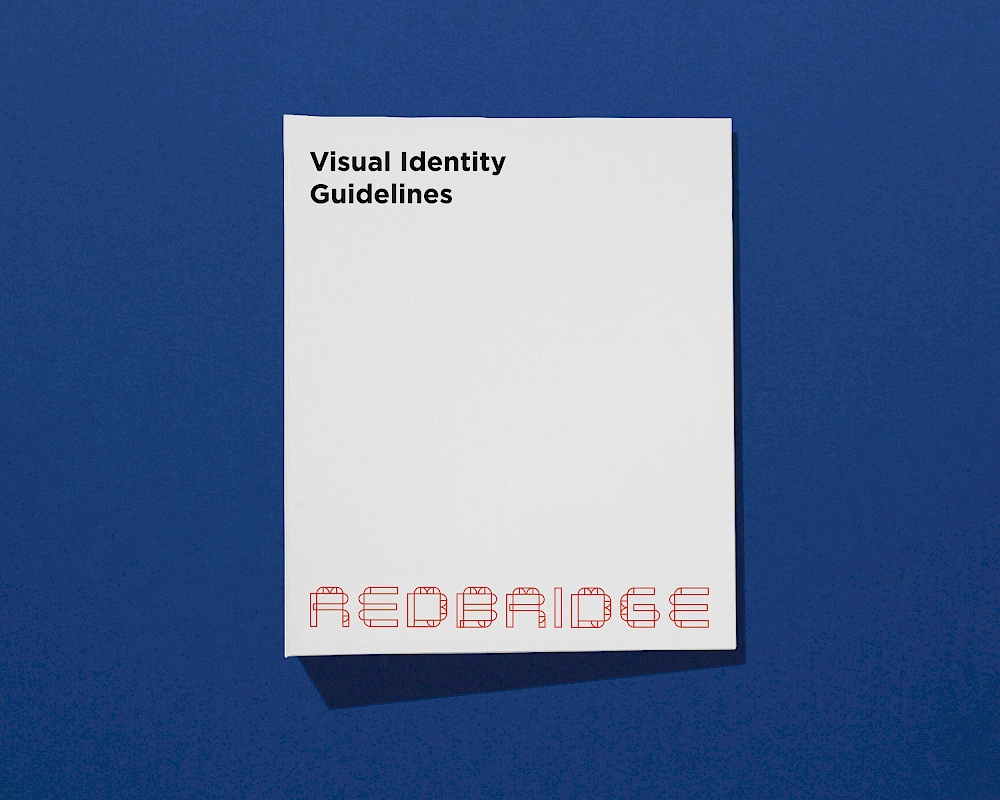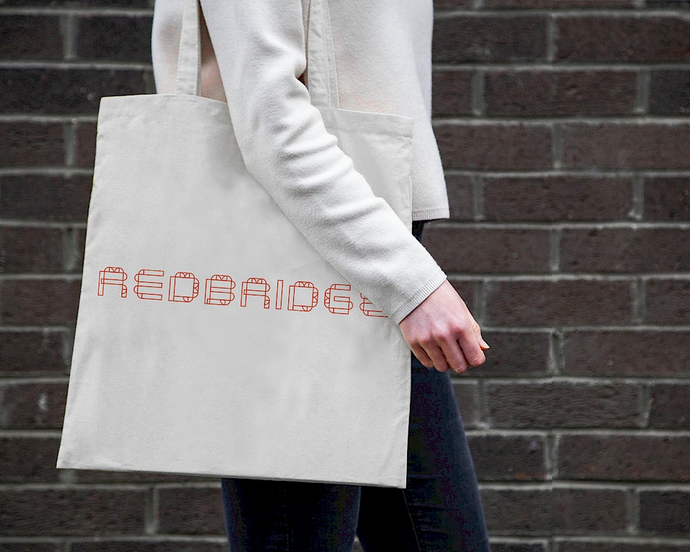 Redbridge, named after a red brick bridge which crossed the River Roding and was demolished in 1922, inspired the concept of a bridge between words and shapes. We created a font constructed with references to the bridge shape and used this to brand the developments. Each site then had its own separate graphic system while sharing an overarching creative idea.